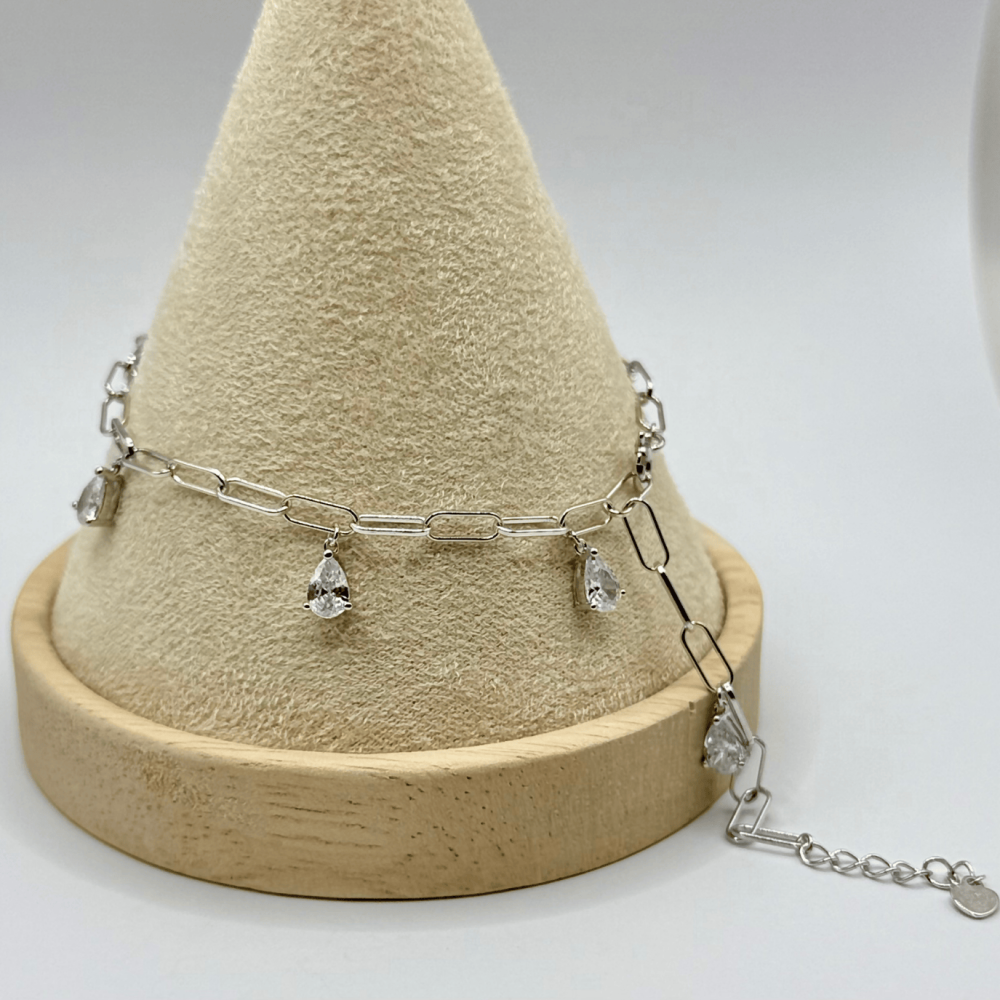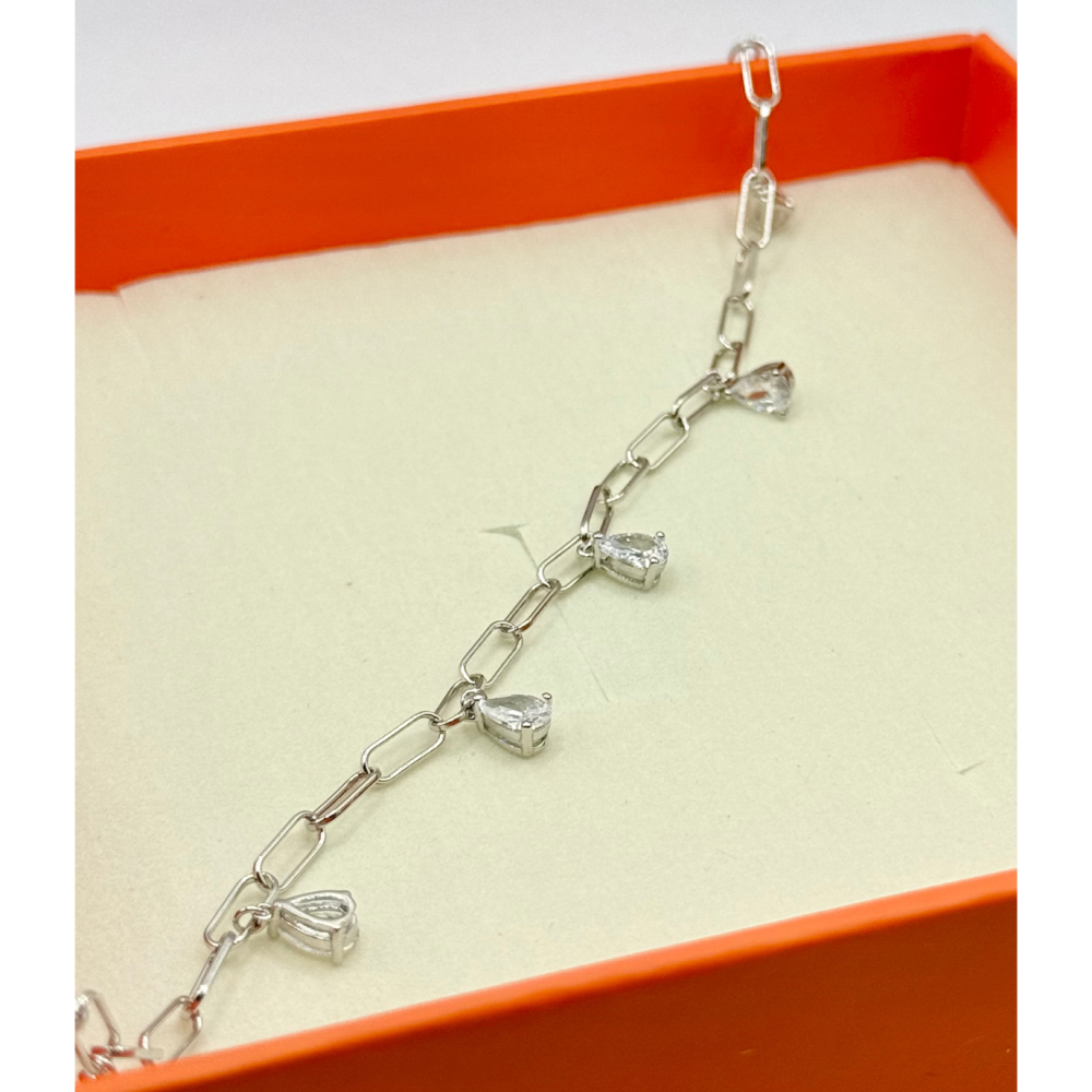 - التصميم: سلاسل مستطيلة مع حبات زركون دموع