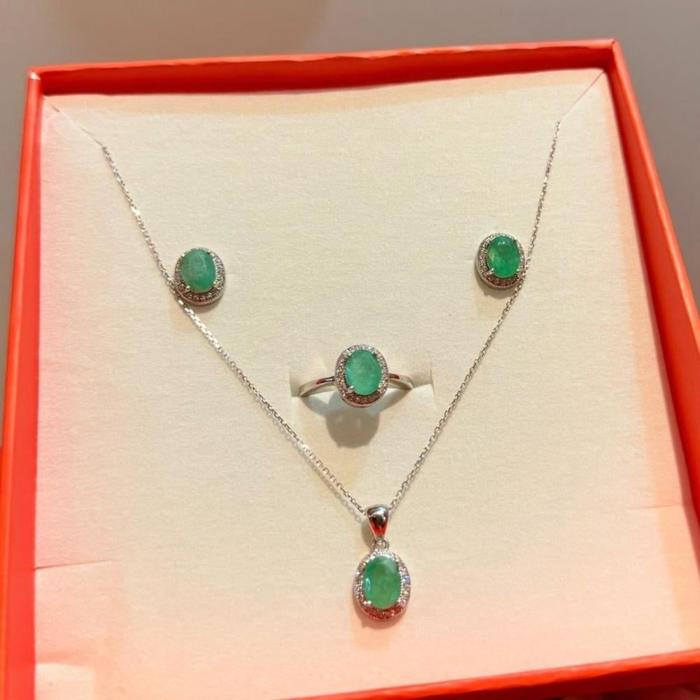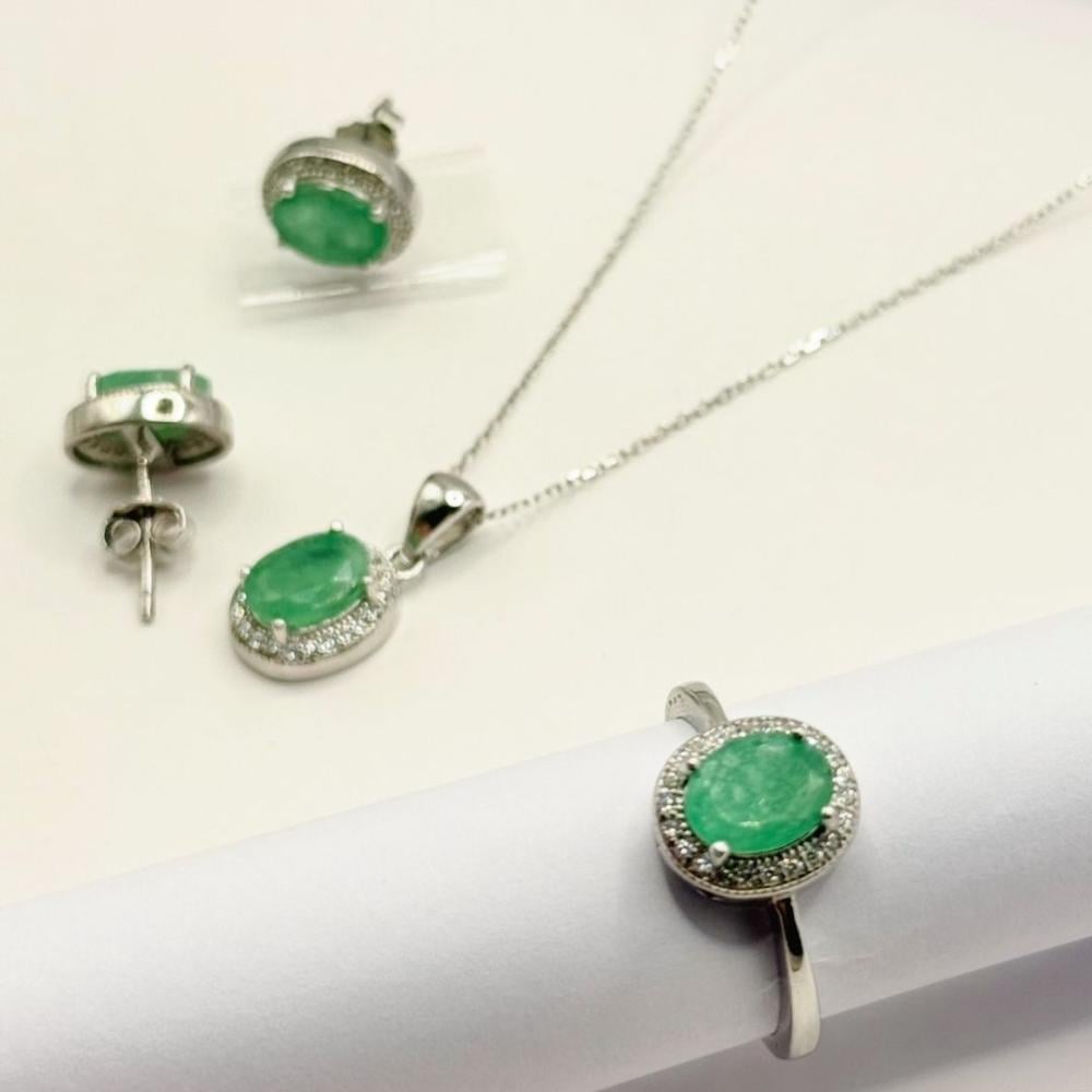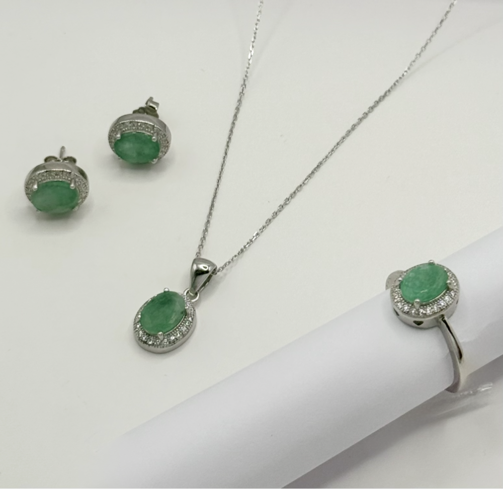 طقم فضه oval عيار ٩٢٥ مطعم بالزمرد
